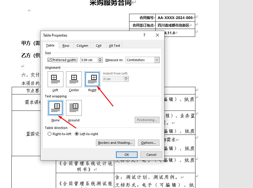 Adjust Table Properties in Word: Ensure that the table in your Word document is set to align to the right. You can do this by selecting the table, going to the “Table Tools” layout tab, and setting the alignment to “Right”.